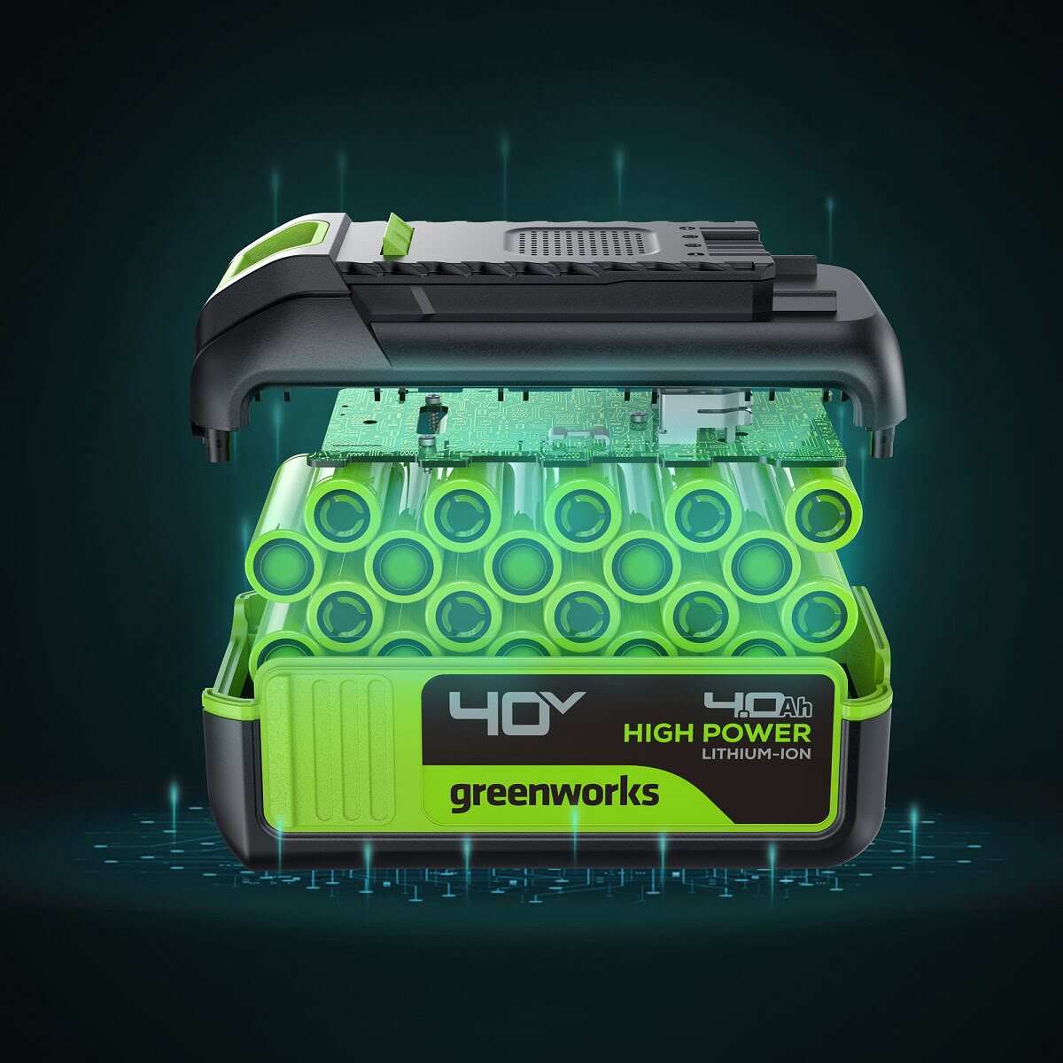 Аккумулятор Greenworks G40HP4 2958507 предназначен для питания всех устройств Greenworks линейки G-MAX 40V.